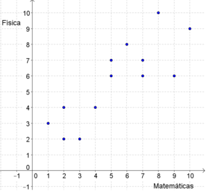 (X,Y)=(Matemáticas,Física)={(3,2),(2,2),(5,6),(1,3),(7,6),(6,8),(2,4),(4,4),(8,10),(9,6),(5,7),(10,9),(7,7)}