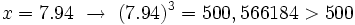 Por tanto, la solución está comprendida entre 7.9 y 8. Seguimos aproximando a las centésimas: