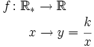 Sea ![]() El numero Este tipo de funciones se llaman así porque si Propiedades de la función de proporcionalidad inversa Las funciones de proporcionalidad inversa