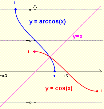 \begin{matrix} f:[-1,1] \rightarrow [0,\pi]\,  \\  \, \qquad \qquad \qquad \ \ \ \ \ x \ \ \  \rightarrow \ \ \ \ y=arccos(x) \end{matrix}