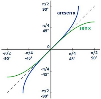 Funciones seno y arcoseno. Observa la simetría entre ambas.