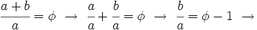 ![]() Demostración: Partimos de la proporción dada: ![]() Separamos en dos sumandos el término de la izquierda: ![]() Llamando ![]() Quitando denominadores y trasponiendo términos: ![]() ecuación de segundo grado cuya única raíz válida es: ![]() |
