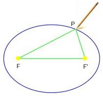 Dados dos puntos y llamados focos, y una distancia , llamada constante de la elipse (), se llama elipse al lugar geométrico de los puntos del plano cuya suma de distancias a los focos es igual a :