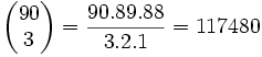 Solución: Calcularemos los casos posibles del experimento y los casos favorables al suceso del enunciado para aplicar la regla de Laplace. Los casos posibles son las distintas formas de extraer 3 bolas entre 90. Como el orden no debe tenerse en cuenta, estos casos son: