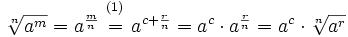 \sqrt[n]{a^m}= a^c \cdot \sqrt[n]{a^r}