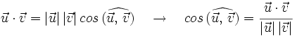 \vec{u} \cdot \vec{v}=|\vec{u}| \, |\vec{v}| \, cos \, (\widehat{\vec{u}, \,  \vec{v}})