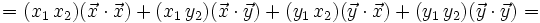 \vec{u} \cdot \vec{v}=x_1 \, x_2 + y_1 \, y_2