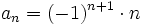 - d) Los términos son los números naturales con los signos alternando: pares positivos e impares negativos.
