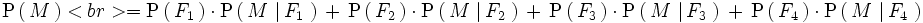 Llamando M = "el producto está defectuosamente envasado", se tiene que este producto puede proceder de cada una de las cuatro factorías y, por tanto, según el teorema de la probabilidad total tenemos: